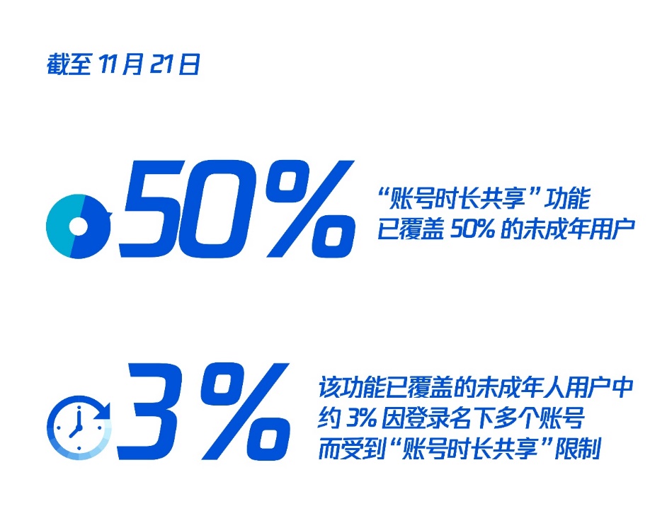 11月15日在《王者榮耀》啟用的“賬號時(shí)長共享”功能,基于自然人身份對未成年用戶名下賬號的總游戲時(shí)長進(jìn)行合并計(jì)算,目前正在逐步發(fā)揮效力。