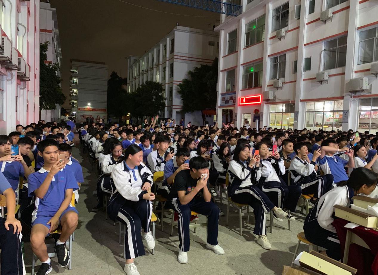 天還亮著,寶山大舞臺(tái)前已座無虛席,學(xué)生們精神抖擻,笑容可親,靜候一場(chǎng)文化饗宴。