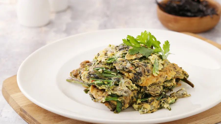 紫菜海蠣煎蛋:頭水紫菜、海蠣被蛋汁層層包裹,紫菜的鮮充分融進每顆海蠣中,是全家大小都愛吃的鮮美。