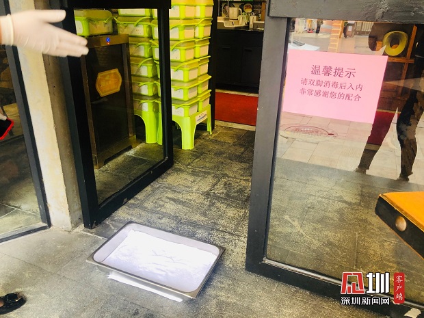 小芙蓉餐廳要求進(jìn)店人員雙腳消毒后方可進(jìn)去。