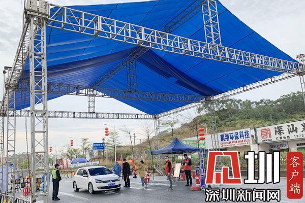 因?yàn)橛杏昱飺踔?,司機(jī)在搖下車窗配合測量體溫時,沒有被雨水淋濕。深圳市公安局深汕公安分局治安大隊(duì)的民警陳志介紹說,這個藍(lán)色的雨棚是昨天晚上搭建的,施工隊(duì)伍還是臨時從深圳市內(nèi)請過來的。“雨棚雖然搭建的很匆忙,但是很堅(jiān)固、也很實(shí)用,今天幫了我們不少忙,不然大家就要在大雨中工作了?!标愔拘χf。(見圳客戶端、深圳新聞網(wǎng)記者羅瑜 蘭俊)