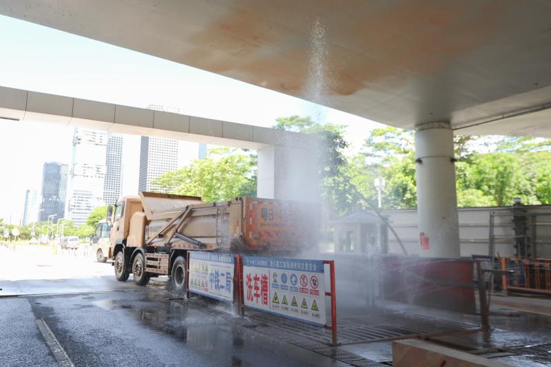 相信很多市民朋友對自卸車(俗稱“泥頭車”)的印象就是又吵又臟,對此記者在現(xiàn)場看到,福田區(qū)的工地已經(jīng)用上電動(dòng)自卸車,跟燒柴油的自卸車相比,不僅節(jié)能環(huán)保,且車子運(yùn)行的噪音也非常小。不僅如此,為了防止自卸車“帶泥上路”,工地的出口處還設(shè)有車輛自動(dòng)沖洗系統(tǒng),每輛泥頭車在駛出工地之前,都要經(jīng)歷一次“全身淋浴”,徹底沖干凈車身以及輪胎上的泥土之后才能離開。