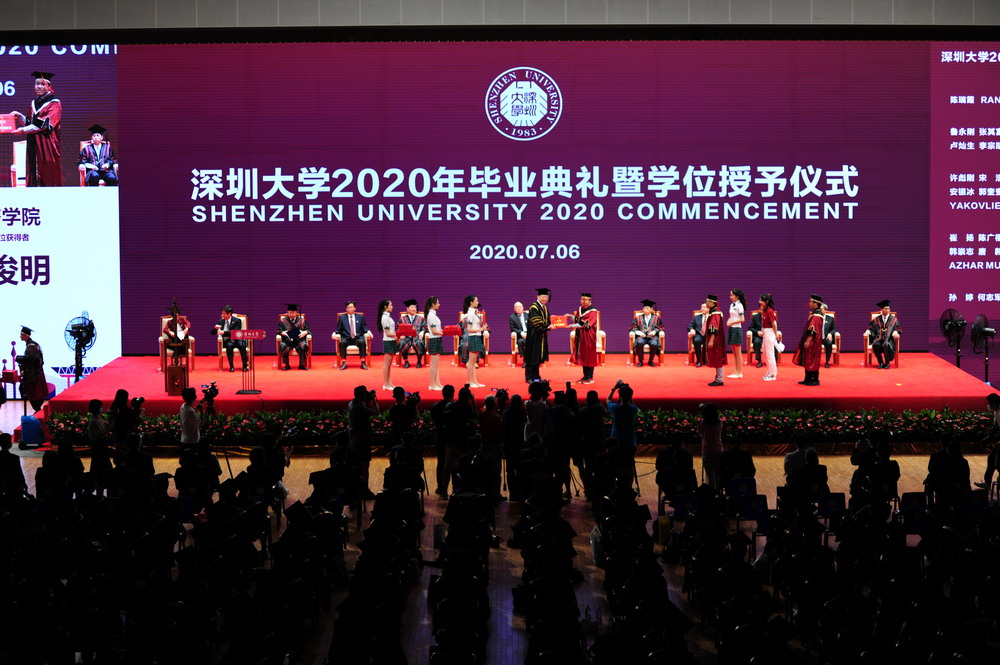 2020年,深圳大學共有6974名應(yīng)屆本科畢業(yè)生。截止6月25日,共有5828名本科生按照教學計劃要求完成專業(yè)學習,按期取得畢業(yè)證書。200名應(yīng)屆本科畢業(yè)生獲得推免生資格。1201名同學被北京大學、清華大學、牛津大學等國內(nèi)外高校和科研機構(gòu)錄取為碩士研究生,占本屆畢業(yè)生人數(shù)的17.63%。2020屆學生積極參與各級各類學科競賽,榮獲國際、國家、省、市各級獎勵。在各類學科競賽中,共獲獎446項,包括55個國際獎項、222個國家級獎項。此外,今年高等學歷繼續(xù)教育學士學位申請人數(shù)達1489人。