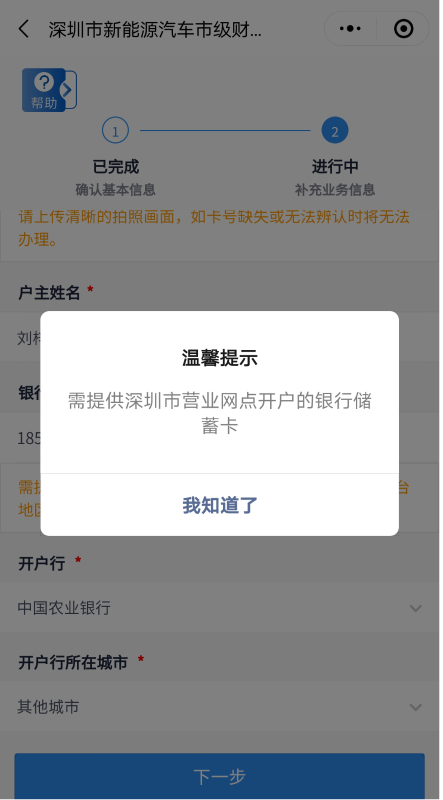 客戶需上傳銀行卡照片,并填寫(xiě)銀行賬號(hào)、開(kāi)戶行信息。開(kāi)戶行如不在選項(xiàng)范圍內(nèi)可選擇“其他”自填。其中,銀行賬號(hào)需為深圳市營(yíng)業(yè)網(wǎng)點(diǎn)開(kāi)戶的銀行一類儲(chǔ)蓄卡,華僑、港澳臺(tái)地區(qū)居民及外國(guó)人需提供深圳市建設(shè)銀行一類儲(chǔ)蓄卡。