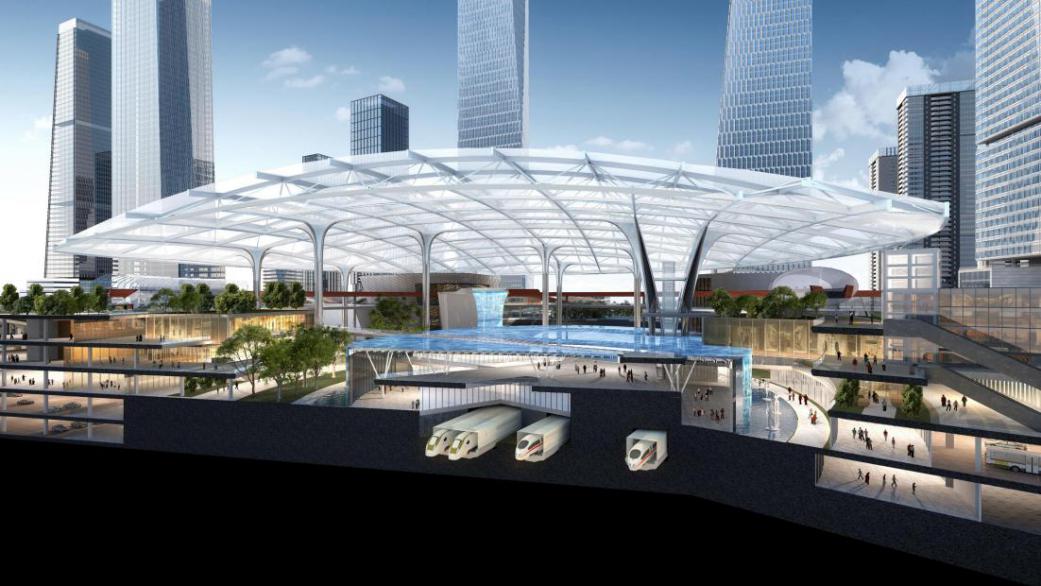 設計將新樞紐廣場融合城市公園、復合業(yè)態(tài)、多維換乘、自然意象、創(chuàng)意環(huán)境等多種場所,塑造多維體驗的城市超核和多維人群活動的北站都心。城市超核以豐富的空間層次融合室內外觸媒,消除城市與樞紐界限,創(chuàng)造與城市功能相融合的等候空間,實現(xiàn)產業(yè)活力與自然活力共生,將車站、城市與自然和諧統(tǒng)一。