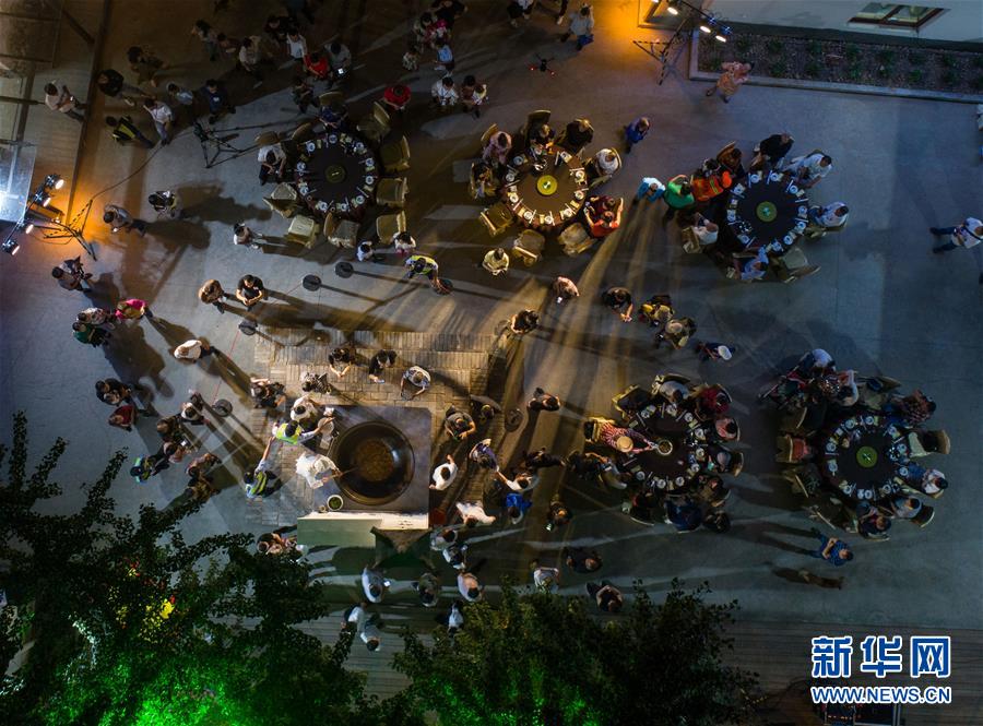 9月30日,中外游客入席品嘗“江鮮第一鍋”(無人機(jī)拍攝)。當(dāng)日,浙江省杭州市富陽區(qū)場口鎮(zhèn)東梓關(guān)村開啟“江鮮第一鍋”,幾位大廚聯(lián)手在直徑1.5米的大鍋內(nèi)烹制美味江鮮,這也是當(dāng)?shù)亍敖r大會”的重頭戲。東梓關(guān)村有著1000多年歷史,古就是富春江南岸重要的商貿(mào)集散地,素有富春江“東流第一關(guān)”之稱。隨著近年來美麗鄉(xiāng)村建設(shè)的推進(jìn),東梓關(guān)村著力打造粉墻黛瓦的江南民居,同時依托富春江豐富的江鮮魚類資源,在秋季舉辦特色“江鮮大會”,通過江鮮捕撈體驗(yàn)、江鮮第一鍋、百鮮宴、農(nóng)家菜大賽等活動,吸引各地游客前來感受富春江漁民豐收的喜悅和千年古村的獨(dú)特魅力,推動鄉(xiāng)村特色旅游發(fā)展。新華社記者徐昱攝