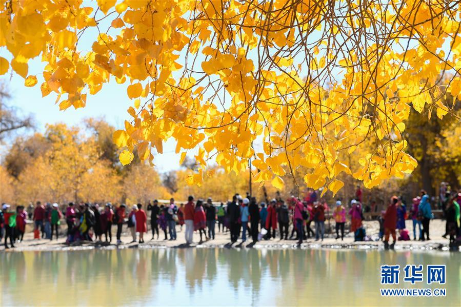 10月10日,在內(nèi)蒙古自治區(qū)額濟(jì)納旗,游客在觀賞胡楊林。 金秋時(shí)節(jié),內(nèi)蒙古自治區(qū)額濟(jì)納旗胡楊林如同披上金裝,成為大漠中的一抹亮色,吸引眾多中外游客前來(lái)觀賞游玩。 新華社記者劉磊攝