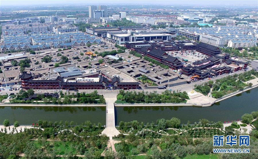 南運(yùn)河北側(cè)的石家大院遺址、仿古建筑群與運(yùn)河形成天津楊柳青古鎮(zhèn)運(yùn)河景觀(2017年7月13日無人機(jī)拍攝)。 運(yùn)河穿城過,古鎮(zhèn)草色新,千年畫鄉(xiāng)楊柳青自傳統(tǒng)中浸潤(rùn)出與眾不同的顏色。40年斗轉(zhuǎn)星移,這個(gè)沉淀千年的小鎮(zhèn),用別樣的風(fēng)姿講述了一個(gè)歷史與現(xiàn)在碰撞而出的改革“新”故事。 新華社記者岳月偉攝