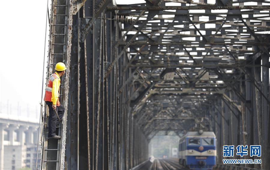中國鐵路成都局有限公司重慶工務(wù)段的巡檢班組在白沙沱長江大橋上等待機(jī)車通過后繼續(xù)作業(yè)(4月23日攝)。 4月23日下午5點(diǎn)40分,隨著重慶白沙沱長江大橋通行的最后一列客運(yùn)列車順利通過,這座“服役”了59年的重慶首座長江大橋進(jìn)入“退役”倒計(jì)時(shí)。4月24日后,所有列車將改線經(jīng)距白沙沱長江大橋約100米的新白沙沱長江特大橋通行,新橋“接力”老橋,運(yùn)輸能力將得到大幅提升。 白沙沱長江大橋于1958年開工,1960年通過首趟列車,是繼武漢長江大橋之后的第二座長江大橋。 新華社記者 劉潺 攝