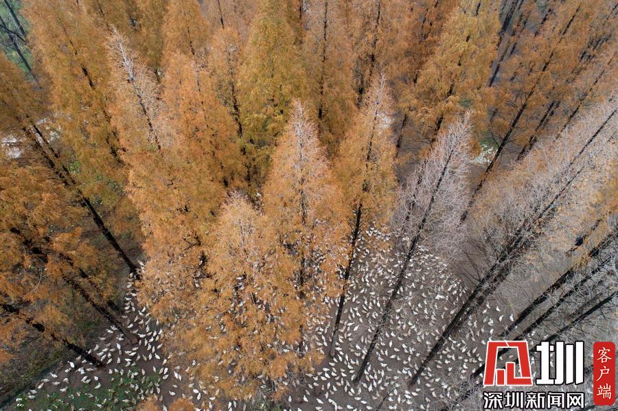 江蘇泗洪5000多只鵝林場吃食,場面壯觀。