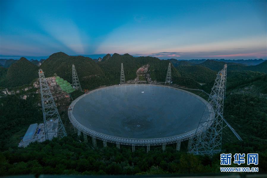 8月27日拍攝的落日余暉中的“中國天眼”。新華社記者歐東衢攝