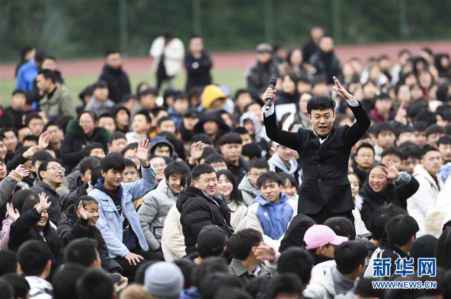 1月15日,中央歌劇院男中音歌唱家王藝清在慰問(wèn)演出中與觀眾互動(dòng)。 當(dāng)日,“我們的中國(guó)夢(mèng)”——文化進(jìn)萬(wàn)家中央歌劇院文藝小分隊(duì)來(lái)到重慶市石柱土家族自治縣第一職業(yè)學(xué)校進(jìn)行慰問(wèn)演出,為學(xué)校的三千多名師生帶來(lái)了一場(chǎng)精彩的音樂(lè)大餐。 新華社記者 王全超 攝