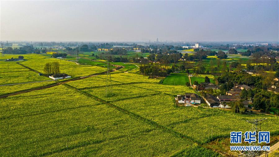 2月25日在四川省崇州市農(nóng)業(yè)產(chǎn)業(yè)功能區(qū)拍攝的油菜花田(無人機(jī)照片)。初春時(shí)節(jié),正值農(nóng)時(shí)。成都平原西部的大邑、崇州等縣市油菜長(zhǎng)勢(shì)良好,一片生機(jī)盎然的景象。新華社記者王曦?cái)z