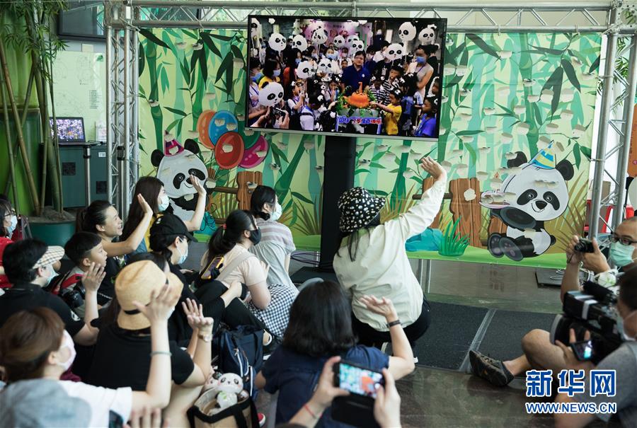 7月6日,在臺(tái)北市立動(dòng)物園,大熊貓“圓仔”的臺(tái)北粉絲和四川粉絲互致問候,共同慶祝“圓仔”生日。新華社記者金立旺攝