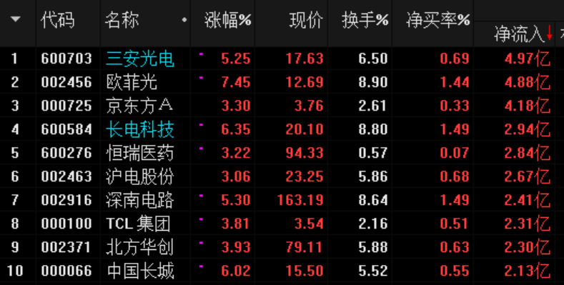 資金凈流入前10名公司均為科技股,多數(shù)為MSCI擴(kuò)容成分股公司。