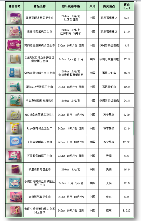 2018年衛(wèi)生巾產(chǎn)品比較試驗(yàn)報(bào)告