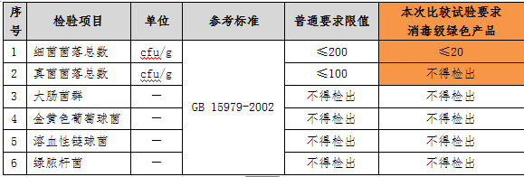 如果衛(wèi)生巾中的微生物指標(biāo)存在問題,會(huì)增加女性月經(jīng)期婦科炎癥的風(fēng)險(xiǎn),危害人體健康,我國(guó)《一次性使用衛(wèi)生用品衛(wèi)生標(biāo)準(zhǔn)》(GB15979-2002)中對(duì)致病微生物有嚴(yán)格要求。本次比較試驗(yàn)參照《綠色產(chǎn)品評(píng)價(jià) 紙和紙制品》(GB/T35613-2017)中微生物限值最嚴(yán)格的消毒級(jí)要求(見下表)考核樣品,結(jié)果顯示,35款樣品均可以達(dá)到消毒等級(jí)的要求。
