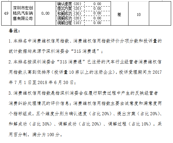 深圳市汽車行業(yè)消費維權(quán)信用指數(shù)排行榜發(fā)布