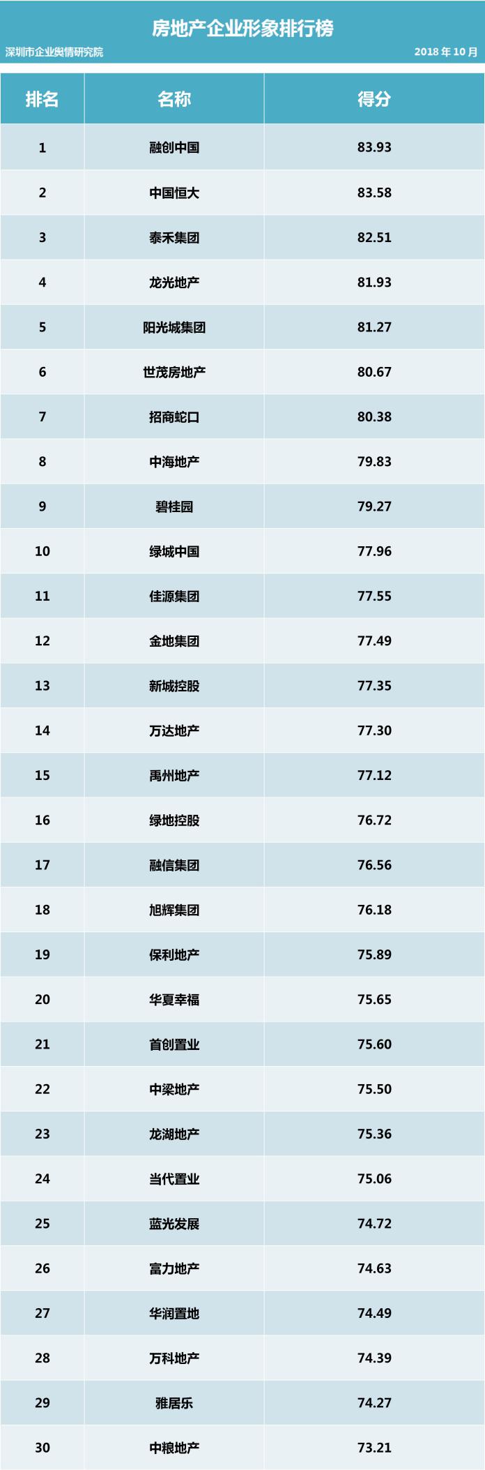 其次在房地產(chǎn)行業(yè)企業(yè)公眾形象排行榜方面,本次企業(yè)公眾形象榜單分值較上一期分值變動幅度較小,排名無變動。榜單中,融創(chuàng)中國仍舊占據(jù)企業(yè)公眾形象榜單榜首,中國恒大次之,泰禾集團(tuán)再次之。而萬科也因“百萬退款”事件公眾形象大跌,繼上期榜單21位退居榜單第28位。