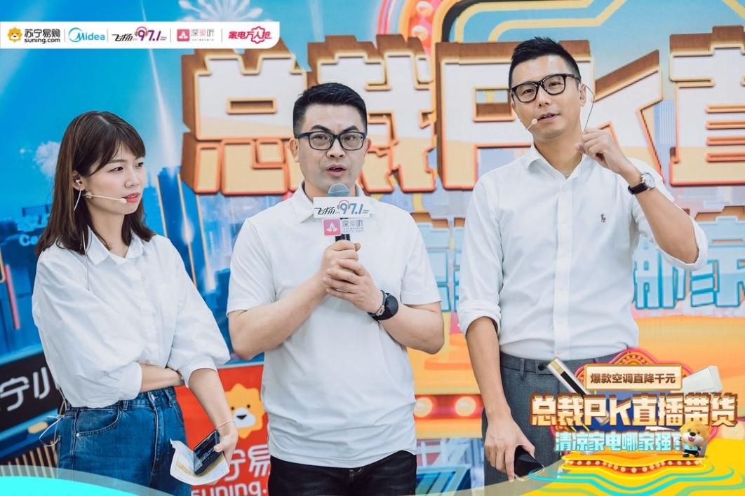 下午五點到六點,繼上場總裁PK直播后,深圳蘇寧聯(lián)合美的攜手飛揚97.1廣播電臺主播持續(xù)再開展一場趣味電臺直播,開播期間觸達(dá)近500萬粉絲,其中999元爆款空調(diào)以及美的國米定制版空調(diào)在開播僅30分鐘就被搶購一空,在總裁們的不斷加碼中,整個直播過程中滿足超過2000名顧客的購物需求。