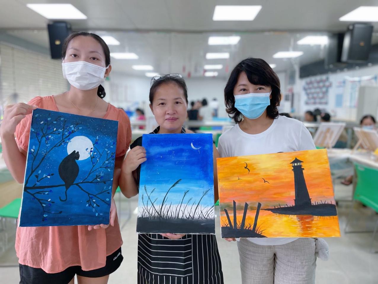 溫馨的環(huán)境,融洽的氣氛,專業(yè)的老師,友好的同伴,媽媽們度過了一個個美好的下午。盡管媽媽們都是零基礎(chǔ),但全情投入的專注,不僅釋放了壓力,更是打開了一扇通往油畫藝術(shù)的小窗。愛自己,愛生活,才能更好地愛家人,本次油畫班持續(xù)開展約兩個多月,媽媽們更好地享受屬于自己的油畫時間,學有所獲。