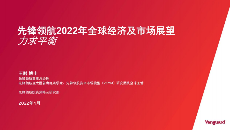 讀特客戶端·深圳新聞網(wǎng)2022年1月26日訊(記者 張俊達(dá))近日, Vanguard先鋒領(lǐng)航于萬得平臺(tái)舉行線上交流會(huì),正式發(fā)布《先鋒領(lǐng)航2022年全球經(jīng)濟(jì)及市場(chǎng)展望:力求平衡》。會(huì)上,先鋒領(lǐng)航投資策略及研究部亞太區(qū)首席經(jīng)濟(jì)學(xué)家、先鋒領(lǐng)航資本市場(chǎng)模型(VCMM)研究團(tuán)隊(duì)全球主管王黔博士就展望報(bào)告進(jìn)行了主題分享并圍繞相關(guān)話題與參會(huì)嘉賓展開了深入探討。