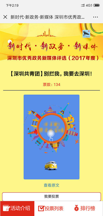 作為中國(guó)"最互聯(lián)網(wǎng)城市〃,深圳近年來大力建 設(shè)政務(wù)新媒體平臺(tái)矩陣,不斷建立健全工作機(jī)制,搭 建起為市民服務(wù)的新渠道、新平臺(tái),涌現(xiàn)出許多優(yōu)秀 的政務(wù)新媒體。廣大市民網(wǎng)友,有哪些政務(wù)微信么, 讓你"欲罷不能〃,有哪位小編讓你〃刻骨銘心〃, 有哪些作品讓你"秒轉(zhuǎn)秒贊"?請(qǐng)為他們投上寶貴一 票吧!本次投票活動(dòng)作為"新時(shí)代新政務(wù)備體"—— 深圳市優(yōu)秀政務(wù)新媒體評(píng)選(2017年度)活動(dòng)的重要 組成部分,其結(jié)果將作為專家評(píng)審類獎(jiǎng)項(xiàng)評(píng)選的重要 參考細(xì),權(quán)重占比50%。