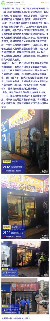 據(jù)統(tǒng)計,2025年8月11日-2025年8月17日,網(wǎng)友在深圳論壇發(fā)布問政類帖文共31篇,得到相關(guān)單位正式回應(yīng)的帖文數(shù)為31篇,本期簡報回應(yīng)速度最快的單位:市市場監(jiān)督管理局光明監(jiān)管局、福田交通局、龍華區(qū)民治街道辦事處、南山區(qū)南頭街道辦事處、市公安局交通管理局龍崗大隊、龍崗區(qū)衛(wèi)生健康局、南山區(qū)城市管理和綜合執(zhí)法局、福田區(qū)梅林街道辦事處、羅湖區(qū)蓮塘街道辦事處。