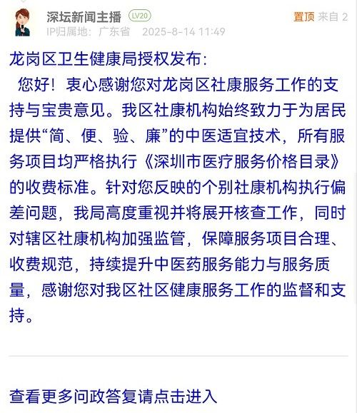 您好!衷心感謝您對龍崗區(qū)社康服務(wù)工作的支持與寶貴意見。我區(qū)社康機(jī)構(gòu)始終致力于為居民提供“簡、便、驗(yàn)、廉”的中醫(yī)適宜技術(shù),所有服務(wù)項目均嚴(yán)格執(zhí)行《深圳市醫(yī)療服務(wù)價格目錄》的收費(fèi)標(biāo)準(zhǔn)。針對您反映的個別社康機(jī)構(gòu)執(zhí)行偏差問題,我局高度重視并將展開核查工作,同時對轄區(qū)社康機(jī)構(gòu)加強(qiáng)監(jiān)管,保障服務(wù)項目合理、收費(fèi)規(guī)范,持續(xù)提升中醫(yī)藥服務(wù)能力與服務(wù)質(zhì)量,感謝您對我區(qū)社區(qū)健康服務(wù)工作的監(jiān)督和支持。