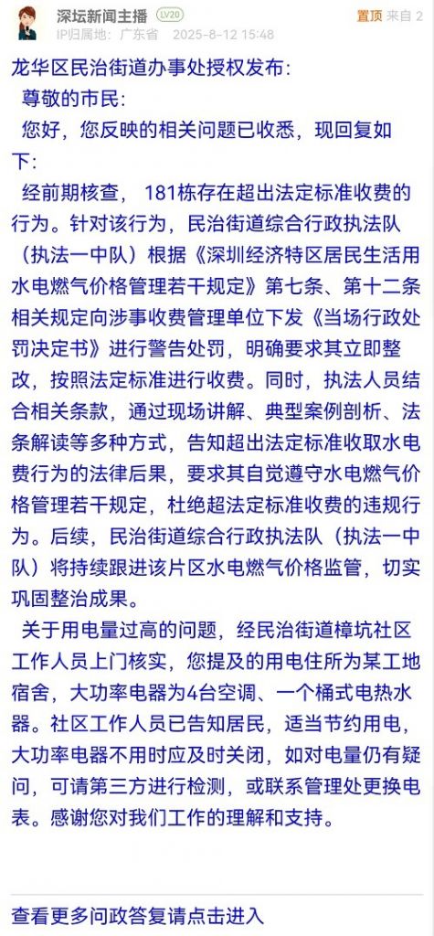 1. 帖文《投訴龍華民治樟坑一區(qū)181棟管理處加收水電費(fèi),電費(fèi)高達(dá)2千元》